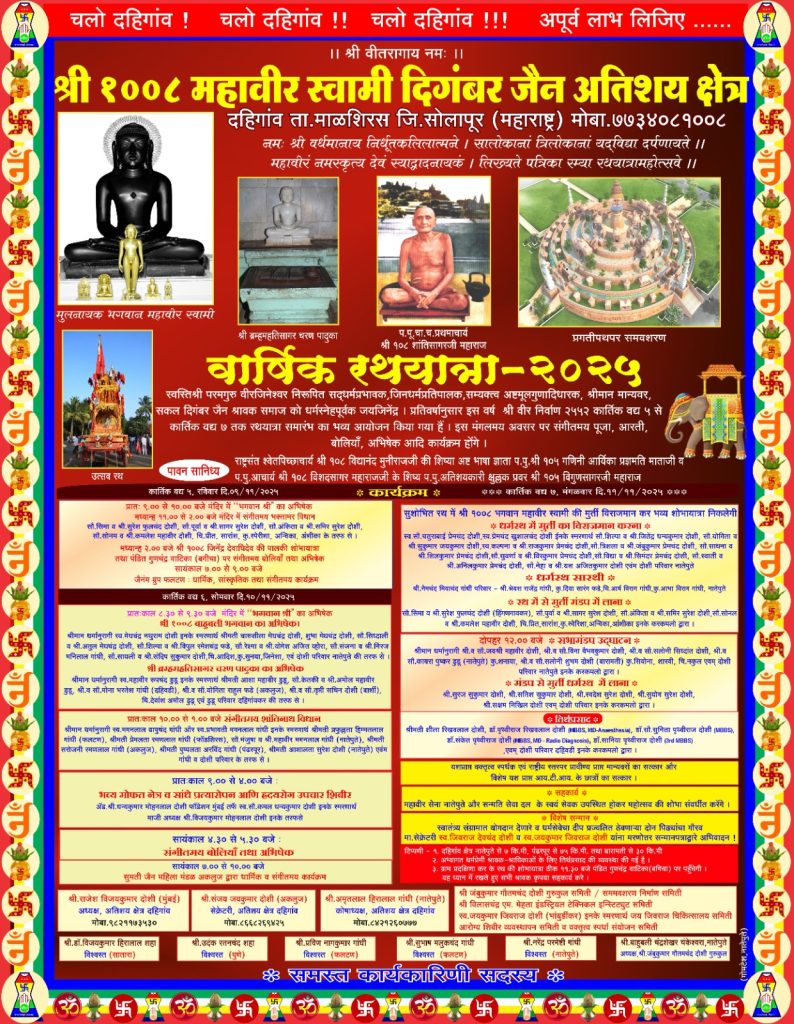 श्री 1008 महावीर स्वामी दिगंबर जैन अतिशय क्षेत्र दहिगाव येथील वार्षिक रथोत्सव