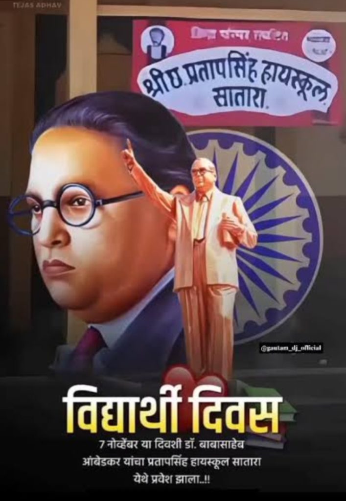 डॉ. बाबासाहेब आंबेडकर यांचा शाळेतील पहिला प्रवेश दिन म्हणजे 7 नोव्हेंबर विद्यार्थी दीन होय…. वैभव गिते