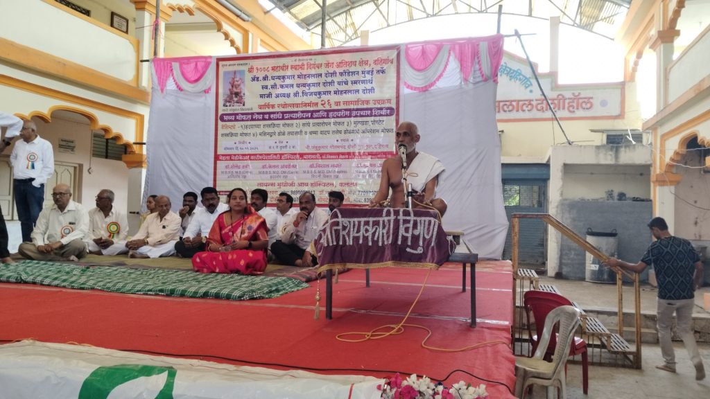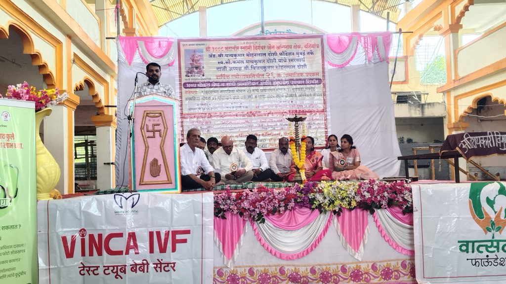 श्री १०००८ महावीर स्वामी दिगंबर जैन अतिशय क्षेत्र दहिगाव येथील वार्षिक रथोत्सवाच्या दुसऱ्या दिवशी, दिनांक१० नोव्हेंबर 2025  रोजी भव्य मोफत नेत्र, सांधे प्रत्यारोपण, आणि हृदयरोग उपचार शिबिर. ॲड. श्री धन्यकुमार मोहनलाल दोशी फाउंडेशन, मुंबई आणि श्री १०००८ महावीर स्वामी दिगंबर अतिशय क्षेत्र, दहिगाव यांच्या संयुक्त विद्यमाने या शिबिराचे आयोजन करण्यात आले होते. दहिगाव येथे रथोत्सवानिमित्त सार्वजनिक शिबिर आयोजित करण्याची गेली २५ वर्षांची परंपरा असून, यंदाचा हा २६ वा सामाजिक उपक्रम होता.शिबिराचे उद्घाटनसकाळी ९:३० वाजता दहिगाव येथील श्री जंबुकुमार गौतमचंद दोशी गुरुकुल येथे या शिबिराचे उद्घाटन झाले. मेहता मेडिकेअर मल्टी स्पेशलिटी हॉस्पिटल, बारामती येथील डॉ. विशाल मेहता आणि संदीप विलासचंद्र दोशी यांच्या हस्ते दीपप्रज्वलन करण्यात आले.शिबिराचे वैशिष्ट्ये या शिबिराला श्री १०५ अतिशयकारी विगुनसागरमहाराज यांचे सानिध्य आणि आशीर्वाद लाभले विकून सागर जी महाराज बोलताना म्हणाली की डॉक्टर हे शरीराचे इलाज करत असतात संत हे आत्म्याचे इलाज करतात दोन्ही इलाज खूप महत्त्वाचे आहेत याचा सर्वांनी लाभ घेतला पाहिजे.शिबिरात ५५० हून अधिक रुग्णांनी तपासणीचा लाभ घेतला. या शिबिराचे मुख्य वैशिष्ट्य म्हणजे तपासणी तसेच उपचार आणि शस्त्रक्रिया मोफत करण्यात येणार आहेत यामध्येहृदयरोग शस्त्रक्रिया, सांधे प्रत्यारोपण मुतखडा आणि प्रोस्टेटच्या शस्त्रक्रिया मशीनद्वारे डोळे तपासणी आणि चष्मा वाटप डोळ्यांचे ऑपरेशनतपासणी केलेल्या रुग्णांना साधारण एक लाख रुपयांची औषधे मोफत वाटण्यात आली, तसेच १०० जणांना मोफत चष्मे देण्यात आले. पुढील मोफत शस्त्रक्रियाया शिबिरात तपासणी झालेल्या रुग्णांपैकी: साधारण ४० रुग्णांचे डोळ्यांचे ऑपरेशन फलटण येथील लायन्स मुधोजी आय हॉस्पिटल, फलटण येथे मोफत करण्यात येणार आहे. हृदय आणि सांध्यांच्या आजाराविषयीचे रुग्ण आणि गरजू रुग्णांना पुढील तपासणी करून त्यांच्यावर मोफत शस्त्रक्रिया मेहता मेडिकेअर मल्टी स्पेशलिटी हॉस्पिटल, बारामती येथे करण्यात येणार आहे.रुग्णसेवेसाठी बारामती येथून डॉ. शैलेंद्र ठवरे (अस्थिरोग तज्ञ), डॉ. केतन आंबर्डेकर (हृदयरोग तज्ञ), डॉ. विशाल नवले (किडनी विकार तज्ञ), डॉ. सुनील ढाके (एमडी मेडिसिन) यांसह अनेक तज्ञ डॉक्टरांनी आपली सेवा दिली. याप्रसंगी दहिगाव गावच्या प्रथम नागरिक सौ. सोनम खिलारे, इंदापूर अर्बन बँकेचे चेअरमन श्री. सत्यशील पाटील, उपसरपंच संदीप सावंत, उपसरपंच श्री. दत्तात्रय पाटील, पोलीस पाटील श्री. मोरे, मंदिरचे ट्रस्ट श्री. संजय दोशी, अमृतलाल गांधी  रत्नत्रय एज्युकेशनचे चेअरमन श्री. आनंदलाल दोशी, राहुल दोशी, अमित गांधी, वैभ