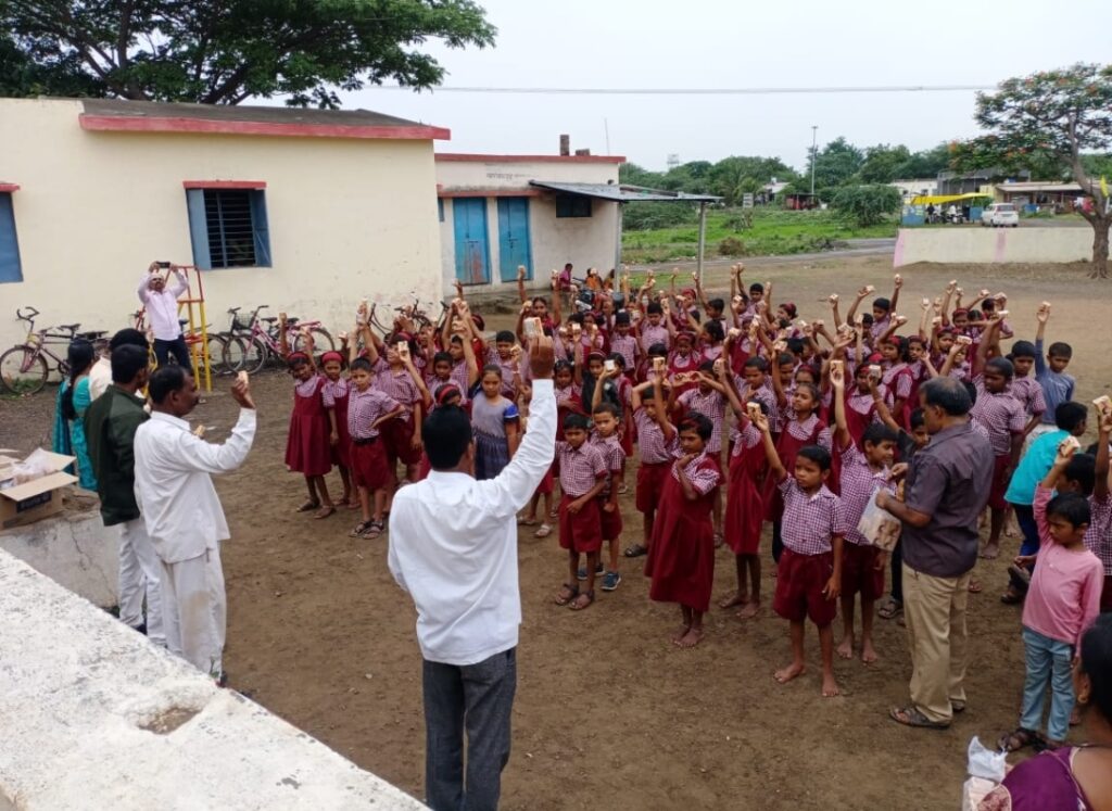 उत्तम जानकर यांच्या वाढदिवसानिमित्त जि प शाळेत खाऊ वाटप