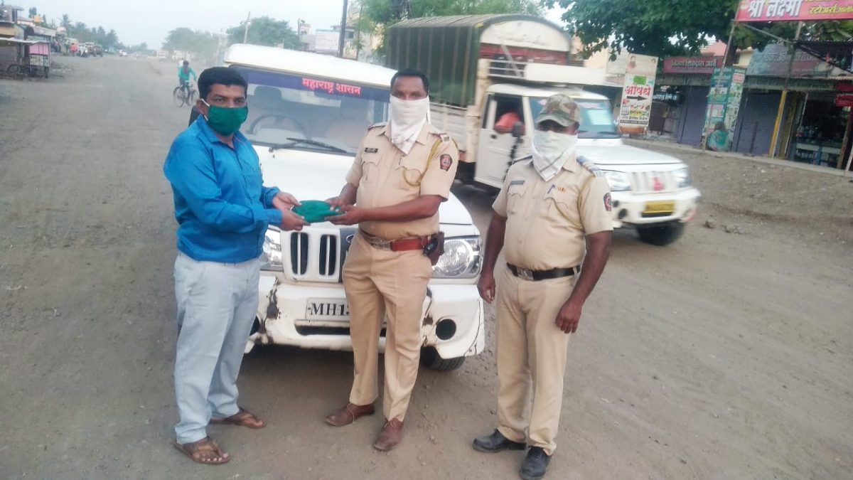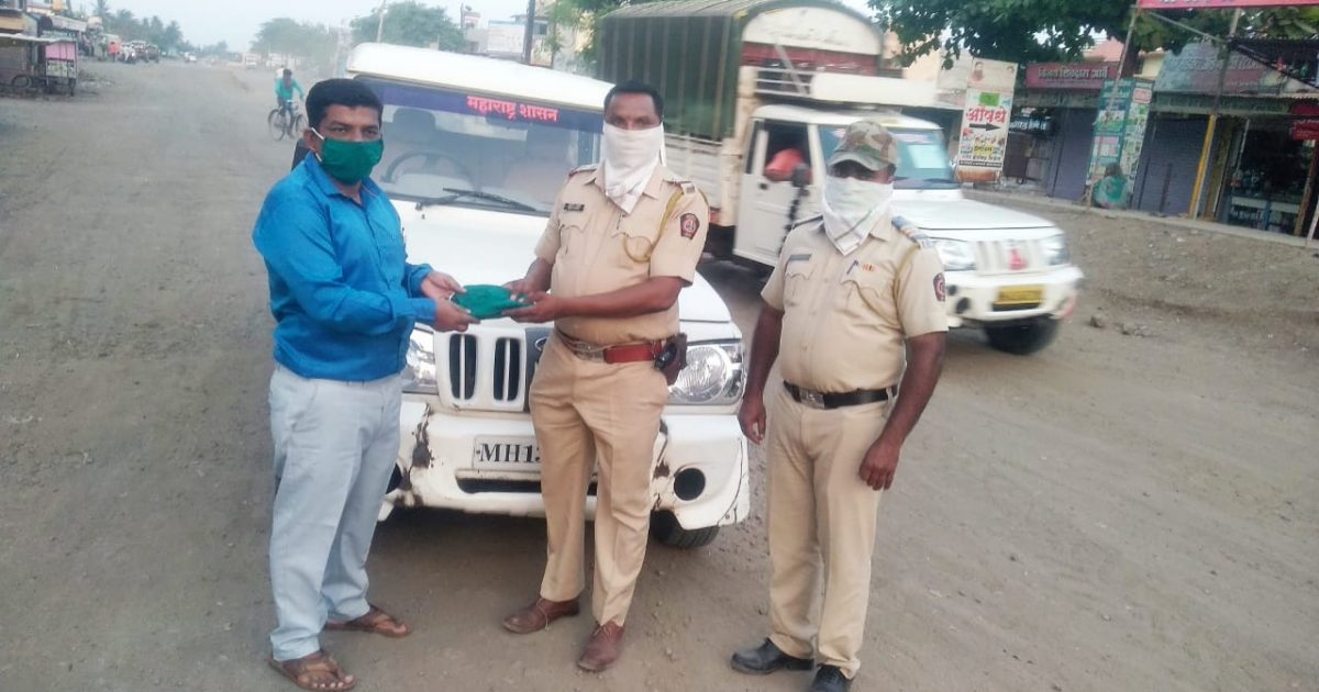 सोशल संस्थेच्यावतीने स्यानीटायझर व मास्क याचे पोलिसांना वाटप