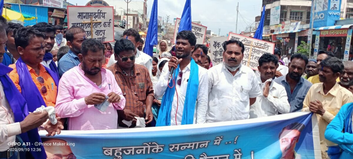 गेल्या अनेक वर्षांपासून भारतीय स्टेट बँक व महाराष्ट्र ग्रामीण बँकेतील व्यवस्थापक हे दलालां कडून चिरीमिरी घेऊन व पुढार्यांच्या सांगण्यावरूनच विविध मागासवर्गीय महामंडळातील कर्ज प्रकरणे करत असून सामान्य माणसाना जाचक अटी लावून सतत टाळाटाळ करून दलालांच्या मार्फत अवैधरित्या मायपुंजी जमा करण्यात गुंग आहेत असा आरोप भीमशक्ती संघटना व नॅशनल दलित मोमेंट फॉर जस्टिस अध्यक्षांनी केली आहे. या आंदोलनात बँक व्यवस्थापक यांची खातेनिहाय सखोल चौकशी करून त्यांना तात्काळ निलंबित करण्यात यावे अशी मागणी केली आहे. बँक व्यवस्थापकांना त्यांनी चक्क गाढवाची उपमा देऊन “गाढव आंदोलन” जवळा बाजार एसबीआय बँक समोर करण्यात आले. सामान्य माणसाना अडथळा निर्माण व कामचुकारपणा केल्यास पुढील परिणामास बँक व्यवस्थापक जबाबदार राहतील याची असे भीम शक्ती युवा तालुका उपाध्यक्ष प्रमोद कुलदीपके यांनी सांगितले. मोर्चा त्यांच्या नेतृत्वात काढण्यात आला होता. या मोर्चास भीमशक्ती मराठवाडा उपाध्यक्ष मिलिंद मोरे, युवा जिल्हा अध्यक्ष विशाल इंगोले, , सागर दिपके, रवी दिपके,. नॅशनल दलित मुव्हमेंट फॉर जस्टीस.NDMJ चे मराठवाडा प्रदेश अध्यक्ष जगदीप दीपके, जिल्हा अध्यक्ष मोहन दिपके. व सर्व NDMJ टीम हिंगोली.सिद्धार्थ भारशंकर, सुमेध मुळे आशिष भैया परीहार, दिलीप भंडारे, अनिल भंडारे , संदीप कुलदीपके, , राहुल घोडके, अनुराधा किर्तन, राहुल वाळवंटे, विलास ठगे, बालाजी पवार, विवेक जमदाडे, जगन धबडगे, महेश कदम , संदीप सुर्यवंशी, काशिनाथ गायकवाड, आशाताई किर्तन, समीर शेख, अमोल सोनवणे, जगन धबडगे, भीमशक्ती सामाजिक संघटना ,नॅशनल दलित मुव्हमेंट फॉर जस्टिस. संघटना व कार्यकर्ते करते उपस्थित होते