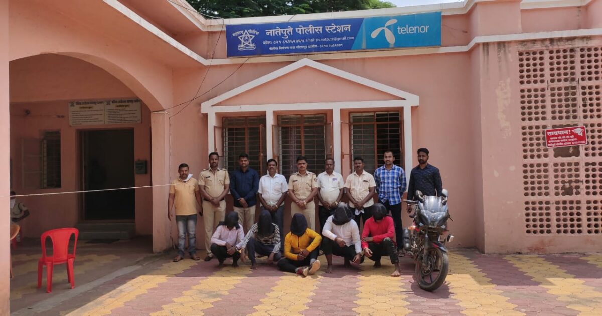 पुरोगामी महाराष्ट्र न्यूज नेटवर्क नातेपुते (प्रतिनिधी)-फिर्यादी प्रकाश शामराव बोंद्रे राहणार निमसाखर बोंद्रे वस्ती तालुका इंदापूर जिल्हा पुणे हे त्यांचा दुधाचा टँकर यामध्ये दूध घेऊन कर्नाटक येथे येऊन परत दहिवडी शिंगणापूर मार्गे नातेपुते कडे येत असताना अज्ञात इसमांनी एक निळ्या रंगाची बिगर नंबरची कार आडवी लावून फिर्यादीला चाकु मारून जखमी केले व रोख रक्कम दहा हजार रुपये व एक मोबाईल जबरदस्तीने करून घेऊन गेले होते. त्याबाबत फिर्यादीने नातेपुते पोलीस ठाण्यात फिर्याद दिल्याने गु.र.न 277/ 2020 भादवि कलम 394,341,34 प्रमाणे गुन्हा दाखल होता.सदर गुन्ह्याचा तपास सहाय्यक पोलीस निरीक्षक युवराज खाडे करीत होते सदर गुन्ह्यातील तपास करीत असताना अप्पर पोलीस अधीक्षक अतुल झेंडे सोलापूर ग्रामीण, उपविभागीय पोलिस अधिकारी अकलूज नीरज राजगुरू, पोलीस निरीक्षक अरुण सावंत स्थानिक गुन्हे शाखा सोलापूर ग्रामीण यांनी गुन्ह्याच्या घटनास्थळी भेट देवून तपासासाठी अनुषंगाने महत्वाची सूचना दिल्या होत्या त्याचप्रमाणे सहाय्यक पोलीस निरीक्षक युवराज खाडे यांनी नातेपुते पोलीस ठाणे कडील दोन तपास पथके नेमून गुन्ह्याचा तपास करीत होते गुन्ह्याचा तपास करत असताना वापरलेली निळ्या रंगाची मारुती कार संशईत रित्या फिरत असताना दिसून आल्याने ती कार ताब्यात घेऊन कारमधील इसमाला नाव विचारले असता त्यांनी आपले नाव गदर अशोक भोसले,शिवाजी रामदास मदने, समीर भारत जाधव, राहणार तावशी तालुका इंदापूर जिल्हा पुणे असल्याचे सांगितले त्यांच्याकडे असलेले वाहना बाबत चौकशी केली असता सदर वरील गुन्हा केल्याची कबुली देऊन इतर आरोपी महावीर सुखदेव खोमणे, रणजीत उर्फ पप्पू कुंडलिक बोडरे,दोघे राहणार चंद्रपुरी तांबेवाडी तालुका माळशिरस येथील प्रदीप उर्फ सोन्या मदने,रोहित बाबू भोसले दोघे राहणार तावशी तालुका इंदापूर सर्वांनी गुन्हा केल्याचे तपासात निष्पन्न झाले आहे सदर गुन्ह्यातील आरोपी पाच जणांना अटक करण्यात आली असून आरोपीने गुन्ह्याची कबुली दिली आहे व हा गुन्हा सात आरोपीने केल्याने भादवि कलम 395 कलम वाढवून अटक आरोपींना न्यायालयात पी सी आर करीता हजर केले असता न्यायालयाने पाच दिवसाची पोलीस कोठडी मंजूर केलेले आहे सदर गुन्ह्याचा तपास नातेपुते पोलीस स्टेशनचे सहाय्यक पोलीस निरीक्षक युवराज खाडे हे करीत आहे सदरचा गुन्हा अप्पर पोलीस अधीक्षक श्री अतुल झेंडे सोलापूर ग्रामीण, उपविभागीय पोलिस अधिकारी अकलूज नीरज राजगुरू, पोलीस निरीक्षक अरुण सावंत स्थानिक गुन्हे शाखा सोलापूर ग्रामीण यांच्या मार्गदर्शनाखाली युवराज खाडे, पो.हे.कॉ अनिल गडदे,रामलिंग कदम,अजित कदम, असलम काझी, पोलीस नाईक महेश पाटील,पो.कॉ.राकेश लोहार, अमित जाधव, 