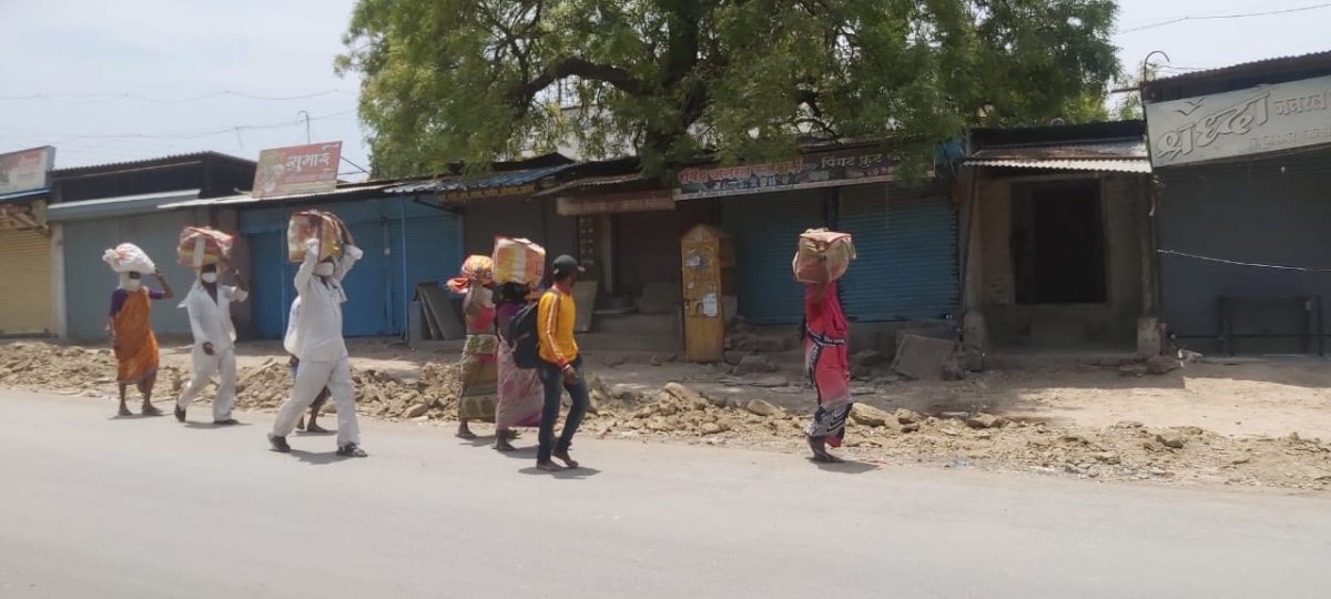 लाॕकडाऊनमुळे गावी पायी जाणाऱ्या मजुरांचे हाल