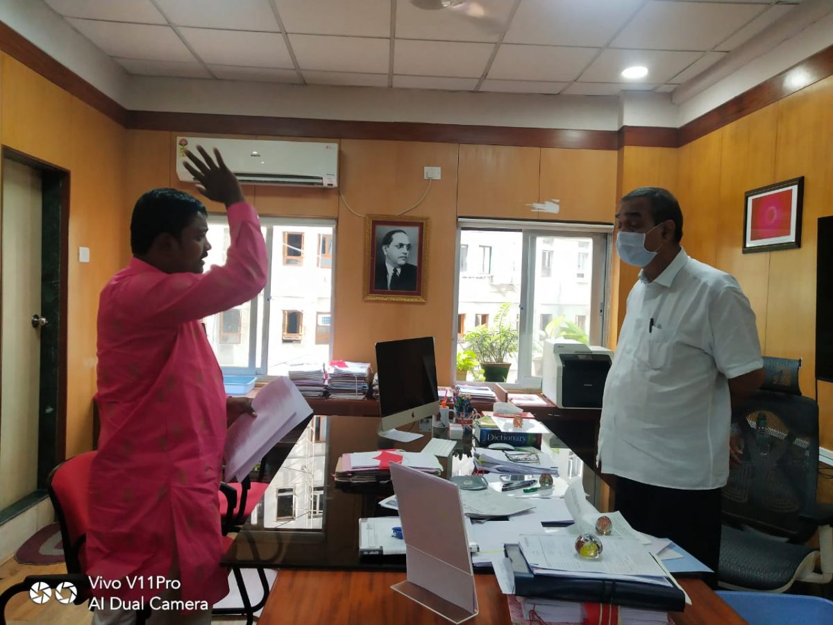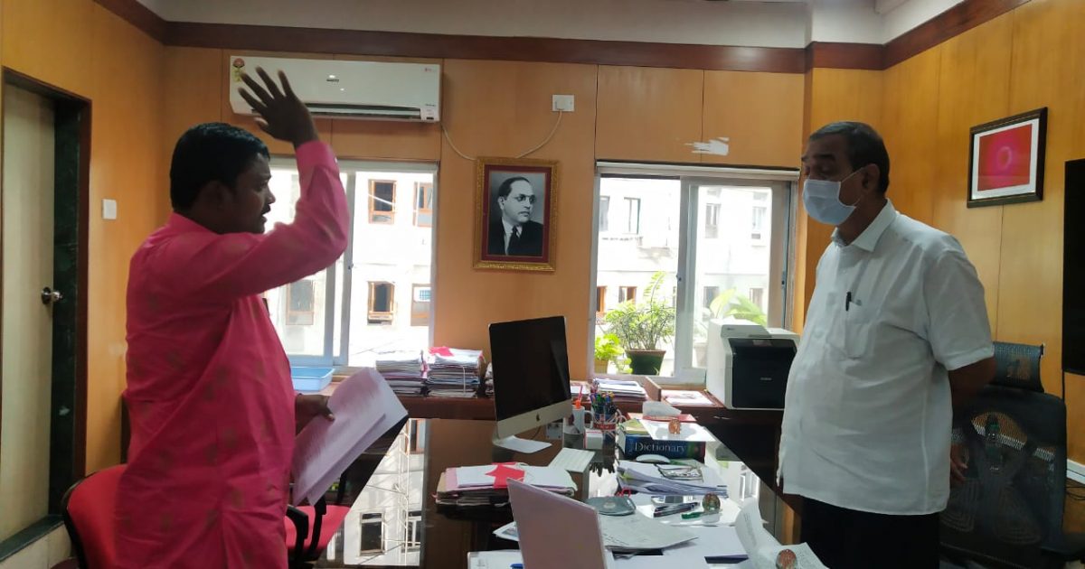 पुरोगामी महाराष्ट्र न्यूज नेटवर्क मुंबई संदेश भालेराव- सोलापूर जिल्ह्यातील माळशिरस तालुक्यातील बोरगाव-माळेवाडी या गावात मातंग समाजाच्या धनाजी अनंता साठे यांचे प्रेत अंत्यविधी करण्यासाठी गावातील रवींद्र शहाजी पाटील सह 13 जणांवर अकलूज पोलीस स्टेशनमध्ये दिनांक 20/8/2021 रोजी एट्रॉसिटी व भादवी च्या कलमान्वये गुन्हा दाखल असूनसुद्धा आरोपींवर कडक कारवाई झाली नसल्याने नॅशनल दलित मूव्हमेंट फॉर जस्टीस या संघटनेचे राज्य महासचिव ऍड.केवलजी उके यांच्या मार्गदर्शनात राज्य सचिव वैभव गिते व ठाणे प्रसिद्धी प्रमुख संदेश भालेराव यांनी थेट मंत्रालयात जाऊन सामाजिक न्याय व विशेष सहाय्य विभागाचे सनदी अधिकारी अपर मुख्य सचिव अरविंद कुमार यांच्या केबिनमध्ये घुसून जाब विचारला वैभव गिते व संदेश भालेराव यांचा आक्रमक पवित्रा पाहून अपर मुख्य सचिव यांनी मंत्रालयीन अधिकाऱ्यांची चांगलीच कानउघडणी केली.आरोपींवर कडक कारवाई करण्याचे लेखी निवेदन देऊन चर्चा केली.राज्याचे पोलीस महासंचालक व जिल्हाधिकारी सोलापूर यांच्याकडून वस्तुनिष्ठ अहवाल मागितला.आठ दिवसात कारवाई न झाल्यास आझाद मैदानात आंदोलन करण्याचा इशारा वैभव गिते यांनी शासनास दिला आहे.त्यामुळे मंत्रालयीन वातावरण गंभीर व गरम झाल्याचे दिसत होते.