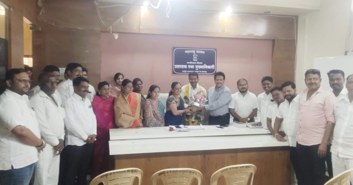 पुरोगामी महाराष्ट्र न्यूज नेटवर्क प्रमोद शिंदे– ऐतिहासिक नातेपुते नगरपंचायतीच्या पहिल्या स्वीकृत नगरसेवक पदी सामाजिक कार्यकर्ते अवी भाई उर्फ अविनाश दोशी यांना संधी मिळाली नातेपुते तालुका माळशिरस येथील 88 वर्षाचे ग्रामपंचायतीचे नगर पंचायती मध्ये विलीनीकरण झाले.पहिल्या नगरपंचायत निवडणुकीत अनुसूचित जाती च्या महिला उमेदवारा साठी नगराध्यक्षपद आरक्षित झाल्याने अध्यक्षपदी उत्कर्षाराणी उमेश पलंगे यांची निवड करण्यात आली.तर उपनगराध्यक्षपदी मालोजीराजे बाबाराजे देशमुख यांची निवड करण्यात आली.तर स्वीकृत सदस्य पदासाठी जनशक्ती विकास आघाडी च्या वतीने अविनाश दोशी यांनी एकमेव अर्ज दाखल केला होता.त्यांचा अर्ज वैध झाल्याने निवडणूक निर्णय अधिकारी अनिल कारंडे व सहाय्यक निवडणूक निर्णय अधिकारी माधव खांडेकर यांनी अविनाश दोशी यांची एकमताने बिनविरोध निवड करण्यात आल्याची घोषणा केली.अविनाश दोशी हे जैन समाजातील पहिले नगरसेवक झाले असून त्यांचे बहुजन समाजासाठी सामाजिक कार्य उल्लेखनीय आहे. कोरोना काळात दोन महिने त्यांनी गोरगरीब लोकांना घरोघरी अन्न पोचून अन्नदान केले. तसेच नातेपुते नगरी सीसीटीव्ही बसवण्यासाठी पुढाकार घेतला ते निसर्गप्रेमी असल्याने त्यांनी मोठ्या प्रमाणात वृक्षारोपण व विविध सामाजिक हिताचे उपक्रम राबवले आहेत. निवड झाल्यानंतर माजी जि.प उपाध्यक्ष बाबाराजे देशमुख यांनी त्यांचा सत्कार केला त्यांच्या कामाचे कौतुक करुन त्यांना शुभेच्छा दिल्या. यावेळी कृषी उत्पन्न बाजार समिती उपसभापती मामासाहेब पांढरे,नगराध्यक्षा उत्कर्षा राणी पलंगे उपनगराध्यक्ष मालोजीराजे देशमुख,माजी सरपंच अमरशील देशमुख, पंचायत समिती सदस्य माऊली पाटील, नगरसेवक दिपाली देशमुख,भारती पांढरे,अनिता लांडगे,संगीता काळे, रणजीत पांढरे, अण्णा पांढरे, सुरेंद्र सोरटे,अतुल बावकर,बाहुबली सेठ शंकेश्वर, संजय कुमार गांधी,संदीप ठोंबरे,नंदू लांडगे, शक्ती पलंगे,डॉक्टर तेजस संकेश्वर, अश्विनी दोशी, विनोद भाई दोशी व कार्यकर्ते मोठ्या संख्येने उपस्थित होते.