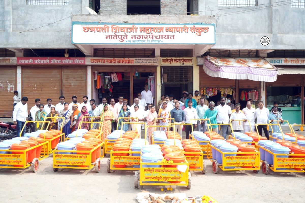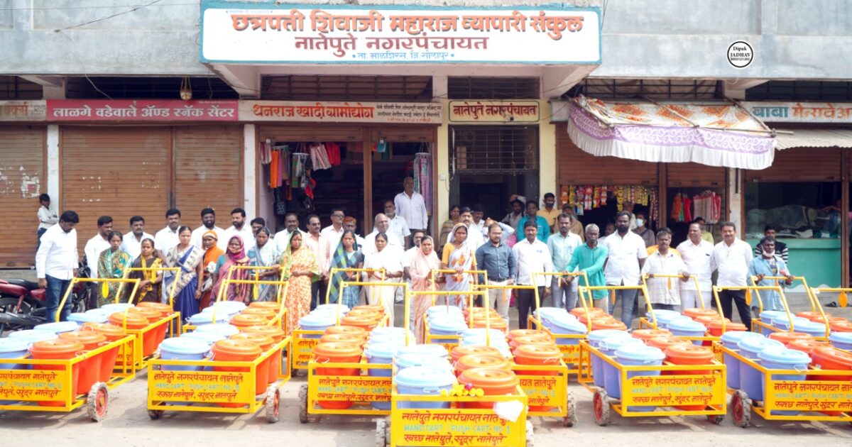 पुरोगामी महाराष्ट्र न्यूज नेटवर्क प्रमोद शिंदे- नगरपंचायत च्या वतीने 2.40 कोटीच्या विकास कामांचे उद्घाटन व पूजन माजी जि.प. उपाध्यक्ष बाबाराजे देशमुख व मान्यवरांच्या हस्ते करण्यात आले.उद्घाटनाची सुरुवात नगरपंचायत च्या समोर स्वच्छ सुंदर नातेपुते या उपक्रमाच्या माध्यमातून सुका व ओला कचरा वेगळा करण्यासाठी सफाई कर्मचारी यांच्याकडे अडीच लाख रुपये किमतीचे 15 अत्याधुनिक प्रत्येकी सहा डबे आलेल्या कचरा घंटा हातगाड्या देण्यात आल्या.