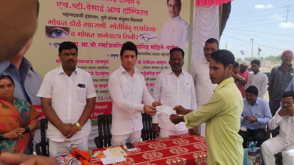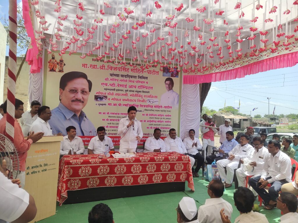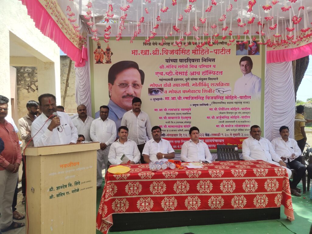 या कार्यक्रमास माजी पंचायत समिती उपसभापती अर्जुनसिंह मोहिते-पाटील,कृषी उत्पन्न बाजार समिती उपसभापती मामासाहेब पांढरे, राहुल वाघमोडे,प्रतापराव पाटील, संजय कोरडकर ,एकशिव गावचे सरपंच शहाजी धायगुडे, उद्योजक सतीश ढेकळ, अतुल शेटे प्रवीण पांढरकर,उमेश खिल्लारे माजी सरपंच बाबुराव,गायकवाड रवींद्र,सूर्यवंशी महादेव होळकर,संदीप वाघ,दादासाहेब शिंदे, दत्तात्रय लवटे, बाबासाहेब शिंदे,दादासाहेब किर्दक, दीपक शिंदे,भारत ग्रामसेवक शैला साळवे डॉ शरद शिंदे, डॉक्टर बर्गे,सुनील माने तसेच पंचक्रोशीतील नेतेमंडळी ग्रामस्थ मोठ्या संख्येने उपस्थित होते. कार्यक्रमाचे आयोजन एच.व्ही देसाई नेत्र रुग्णालय मंमदवाडी पुणे सरपंच अलका नरोळे उपसरपंच कमल खिलारे सदस्य व ग्रामस्थ यांच्यावतीने करण्यात आले कार्यक्रमाचे सूत्रसंचालन विठ्ठल सूर्यवंशी व भाऊसाहेब भिसे यांनी केले.