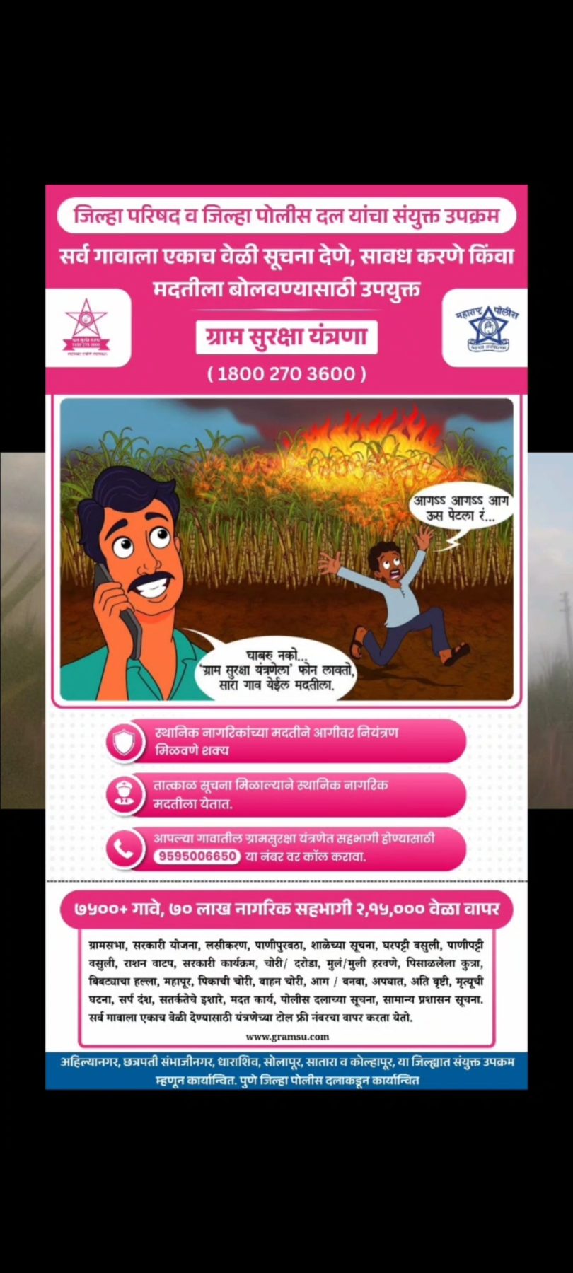 ग्राम सुरक्षा यंत्रणेच्या तात्काळ व प्रभावी वापरामुळे 30 एकर ऊस आगीपासून वाचविण्यात ग्रामस्थांना यश