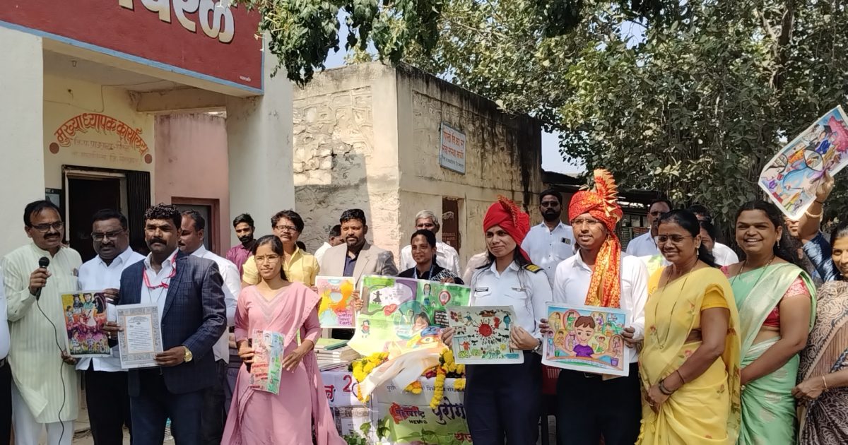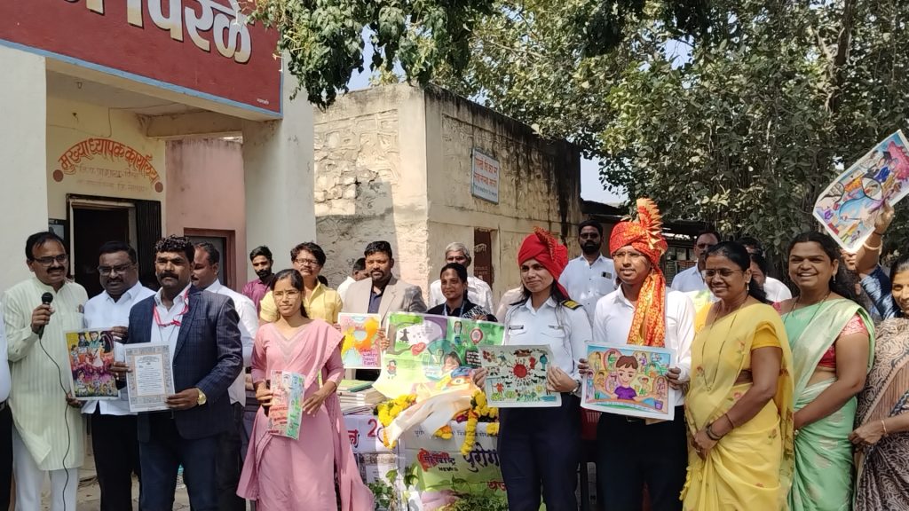 याप्रसंगी विस्ताराधिकारी कादर शेख,मुख्याध्यापक मंदाकिनी सुतार मॅडम,दादासाहेब साळवे सर, सरपंच अमोल शिंदे, मोहन पवार,अध्यक्ष आशा बुधावले, प्रशांत खरात,विश्वास बनकर,दत्ता कांबळे,सचिन झेंडे, हनुमंत धाइंजे, तसेच शिक्षक स्टाफ विद्यार्थी ग्रामस्थ मोठ्या संख्येने उपस्थित होते.सूत्र संचालन हनुमंत फुले सर यांनी केले.कार्यक्रमाचे आयोजन पुरोगामी महाराष्ट्र परिवाराचे प्रमुख प्रमोद शिंदे यांनी केले.कार्यक्रम यशस्वी होण्यासाठी हनुमंत फुले सर संजय ढवळे सर,मीना शेंडगे मॅडम,अमोल खरात सर,पाटील सर, शिंदे मॅडम, फुले मॅडम सर्व शिक्षक स्टाफ यांनी परिश्रम घेतले.